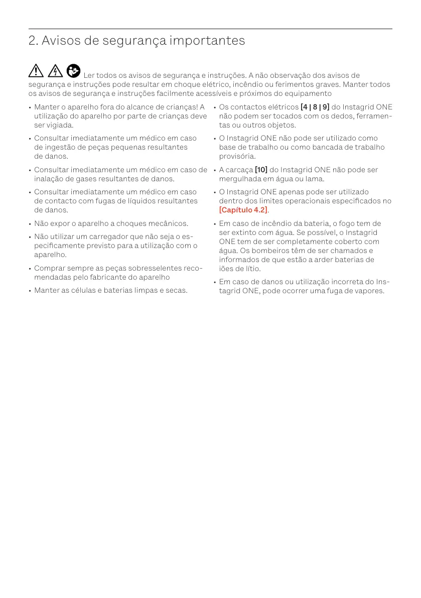 • Os contactos elétricos [4 | 8 | 9] do Instagrid ONE