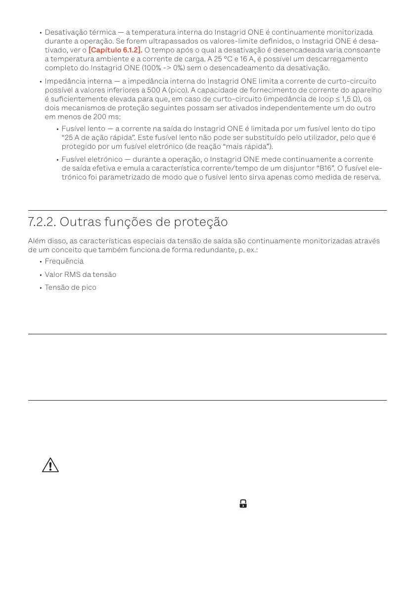 • Fusível eletrónico — durante a operação, o Instagrid ONE mede continuamente a corrente