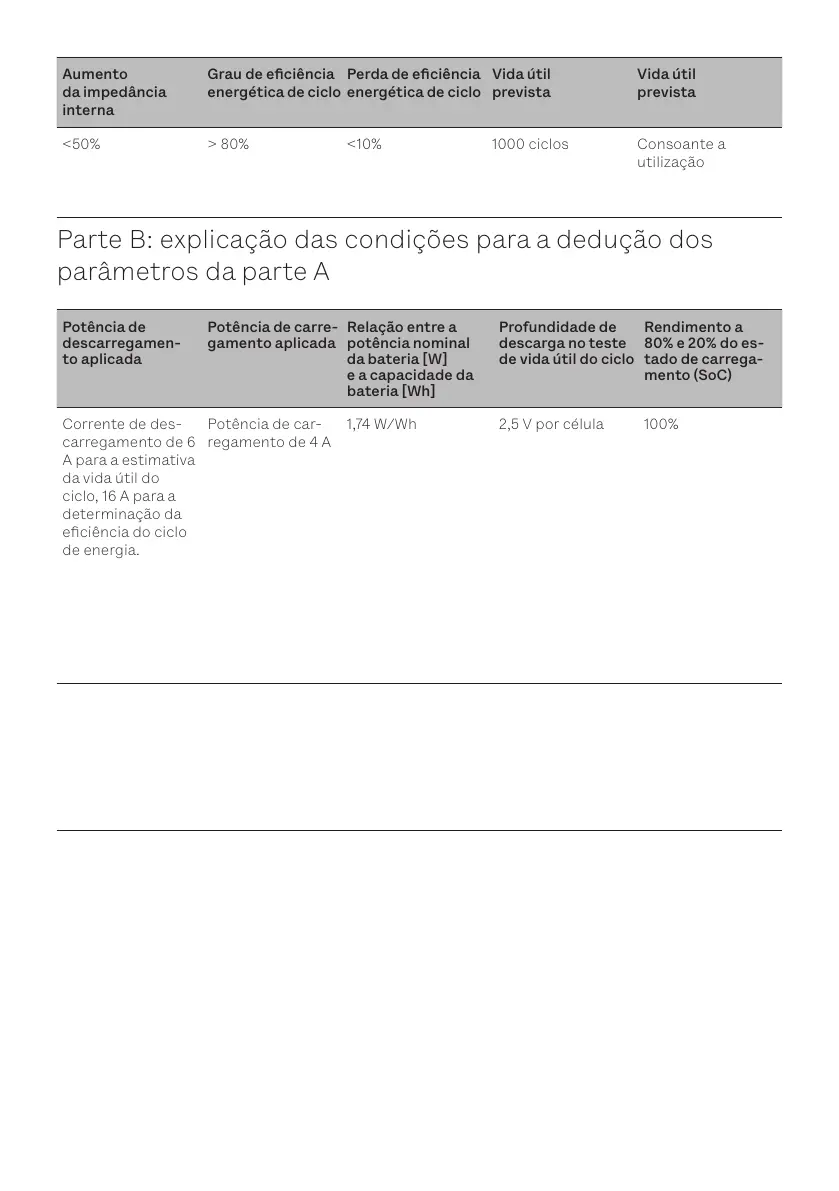 <50% > 80% <10% 1000 ciclos Consoante a