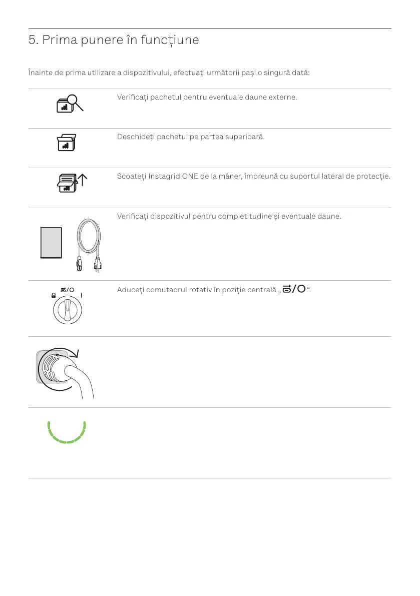 Conectați cablul de alimentare la Instagrid ONE și la rețeaua electrică. Aștep-