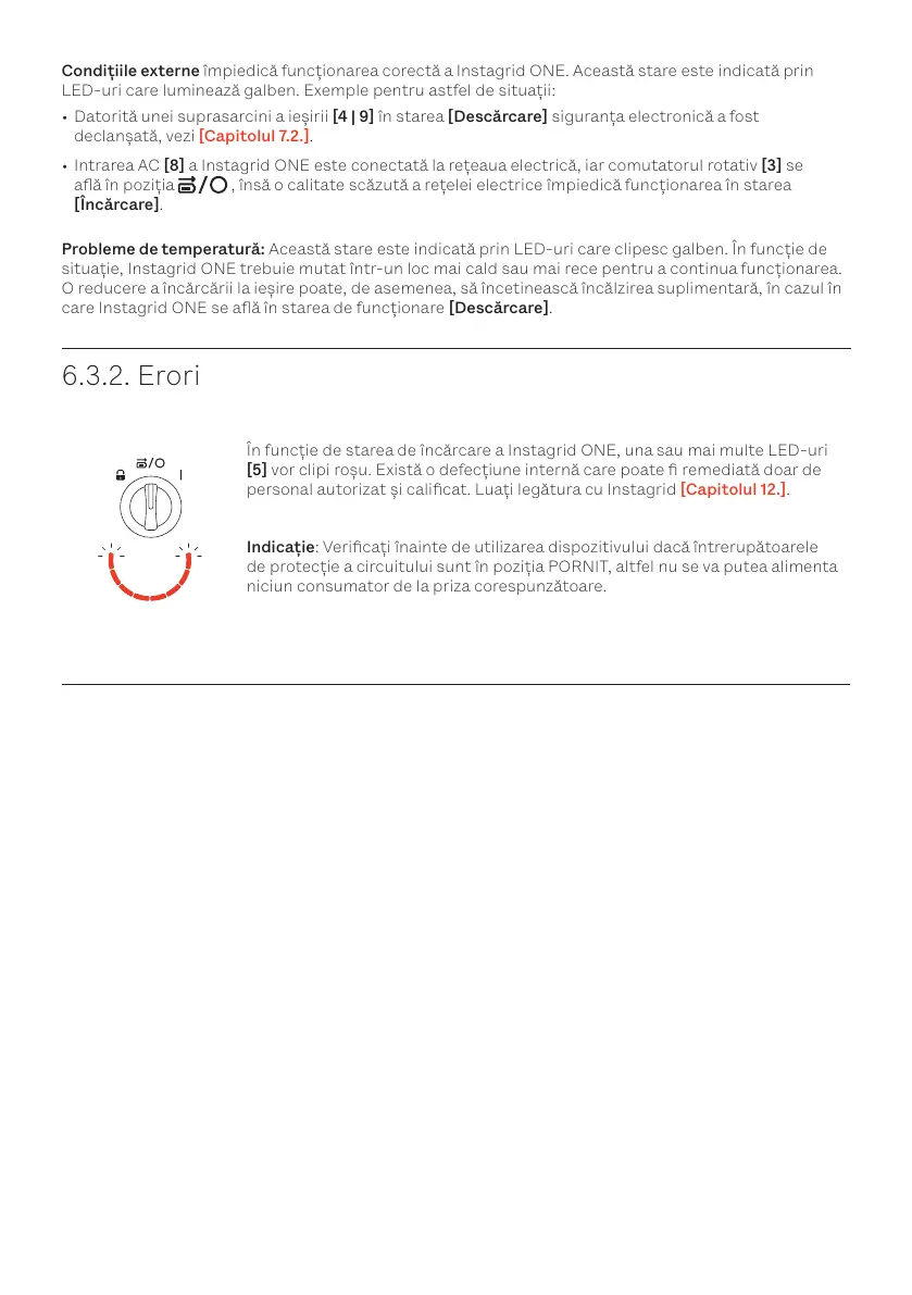 • Instagrid ONE se aă în starea de funcționare OPRIT. Instagrid ONE poate pornit după cel puțin
