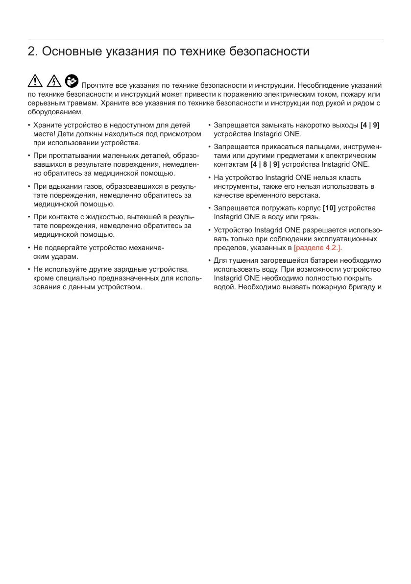контактам [4 | 8 | 9] устройства Instagrid ONE.