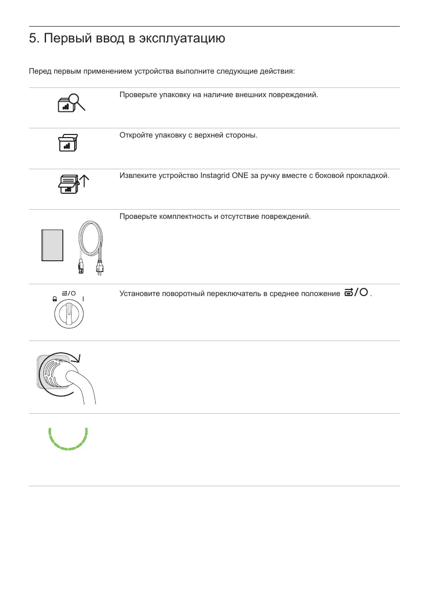 Подсоедините кабель питания к устройству Instagrid ONE и электросети.