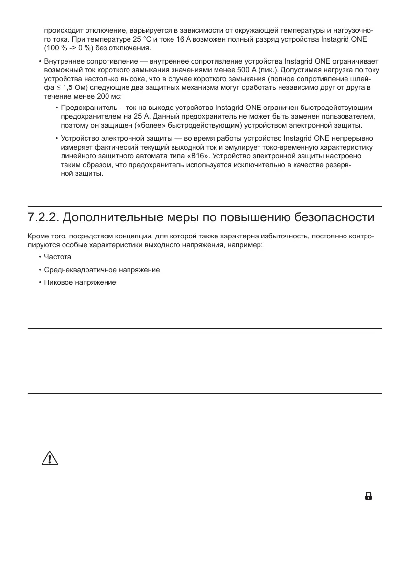 • Предохранитель – ток на выходе устройства Instagrid ONE ограничен быстродействующим