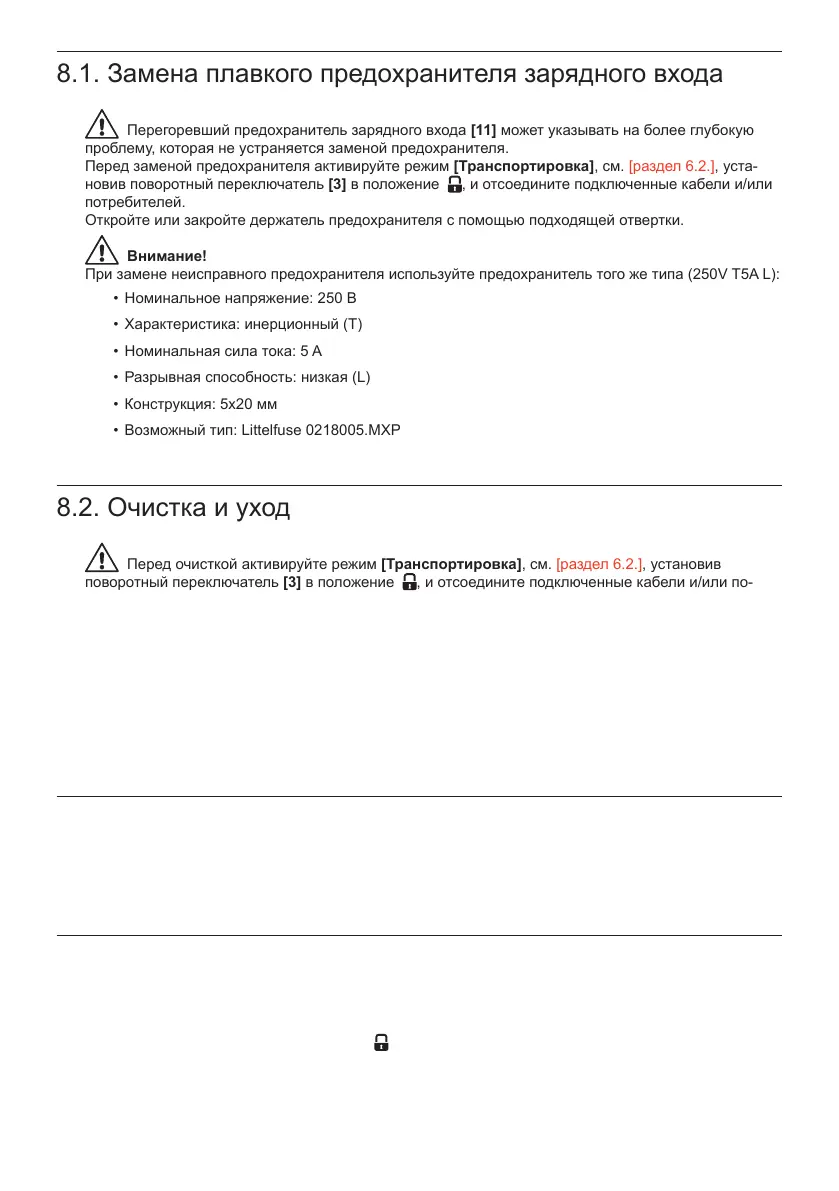 Перед заменой предохранителя активируйте режим [Транспортировка], см. [раздел 6.2.], уста-
