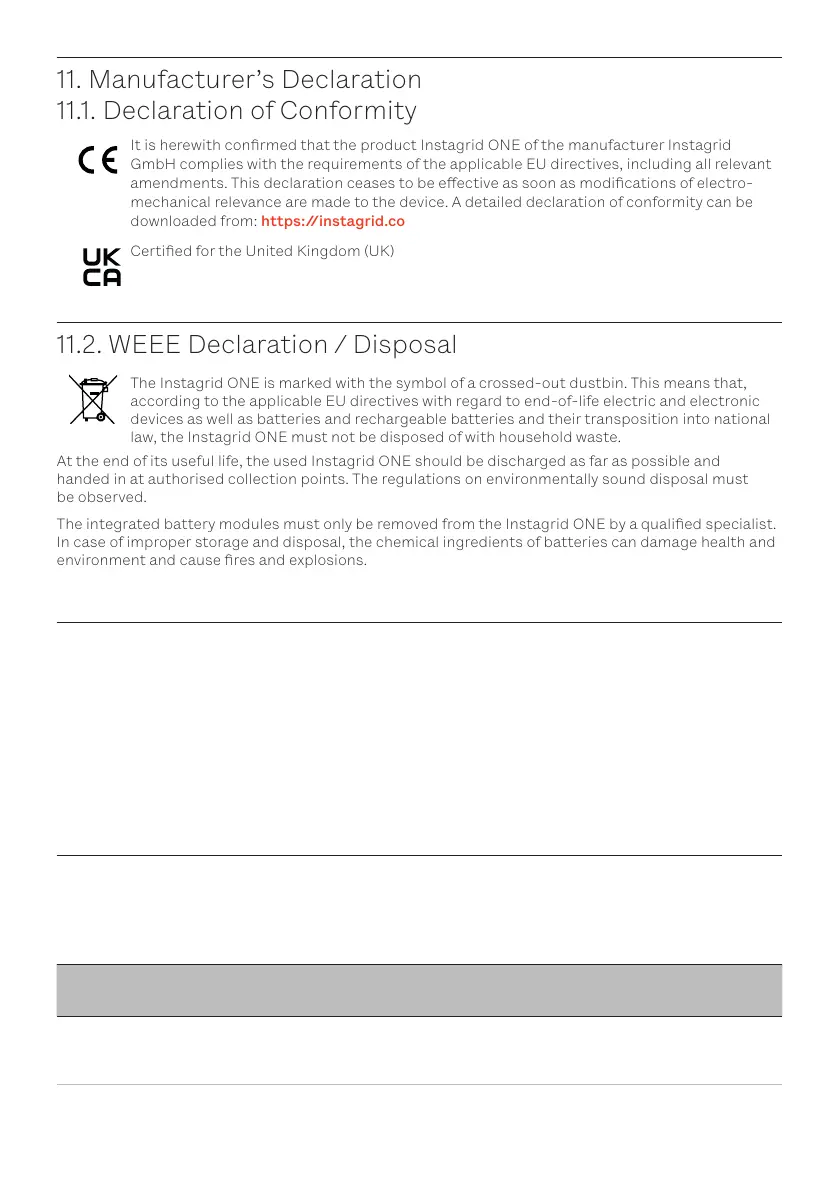 At the end of its useful life, the used Instagrid ONE should be discharged as far as possible and