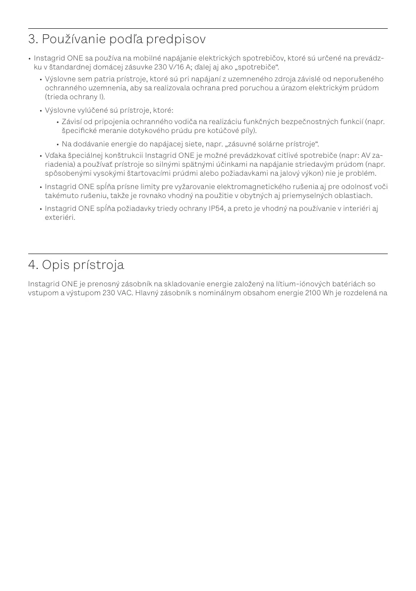 • Instagrid ONE sa používa na mobilné napájanie elektrických spotrebičov, ktoré sú určené na prevádz-