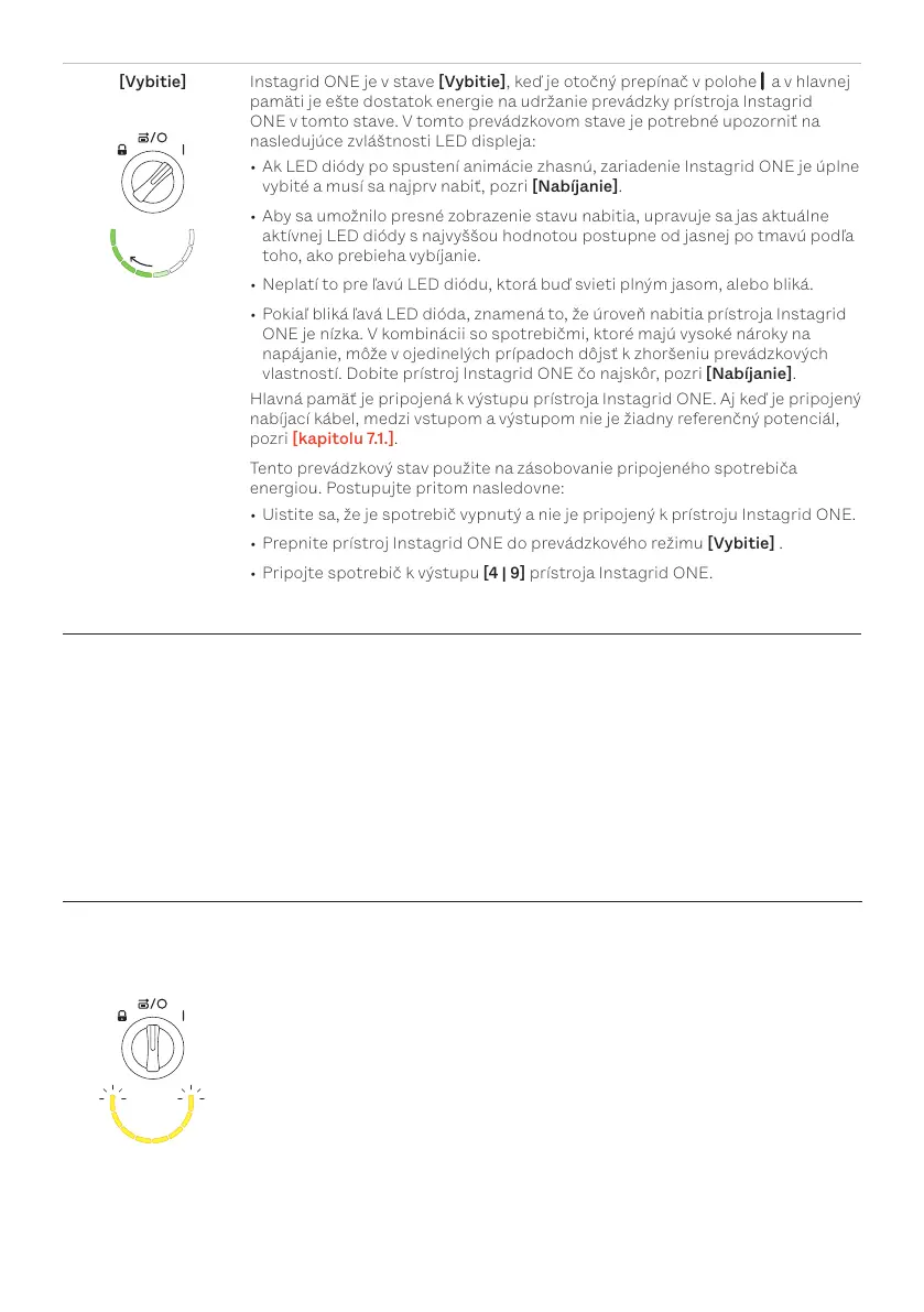 V závislosti od stavu nabitia prístroja Instagrid ONE sa rozsvieti alebo