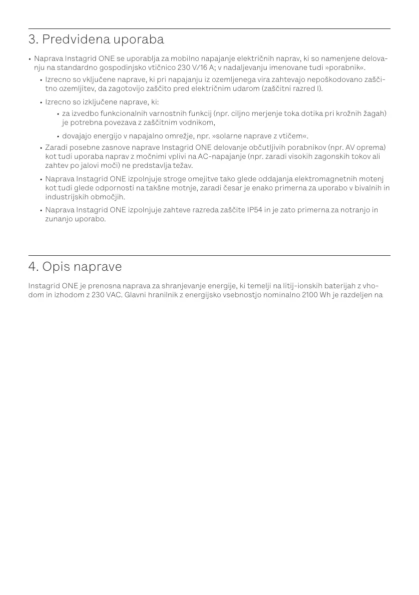 • Naprava Instagrid ONE se uporablja za mobilno napajanje električnih naprav, ki so namenjene delova-