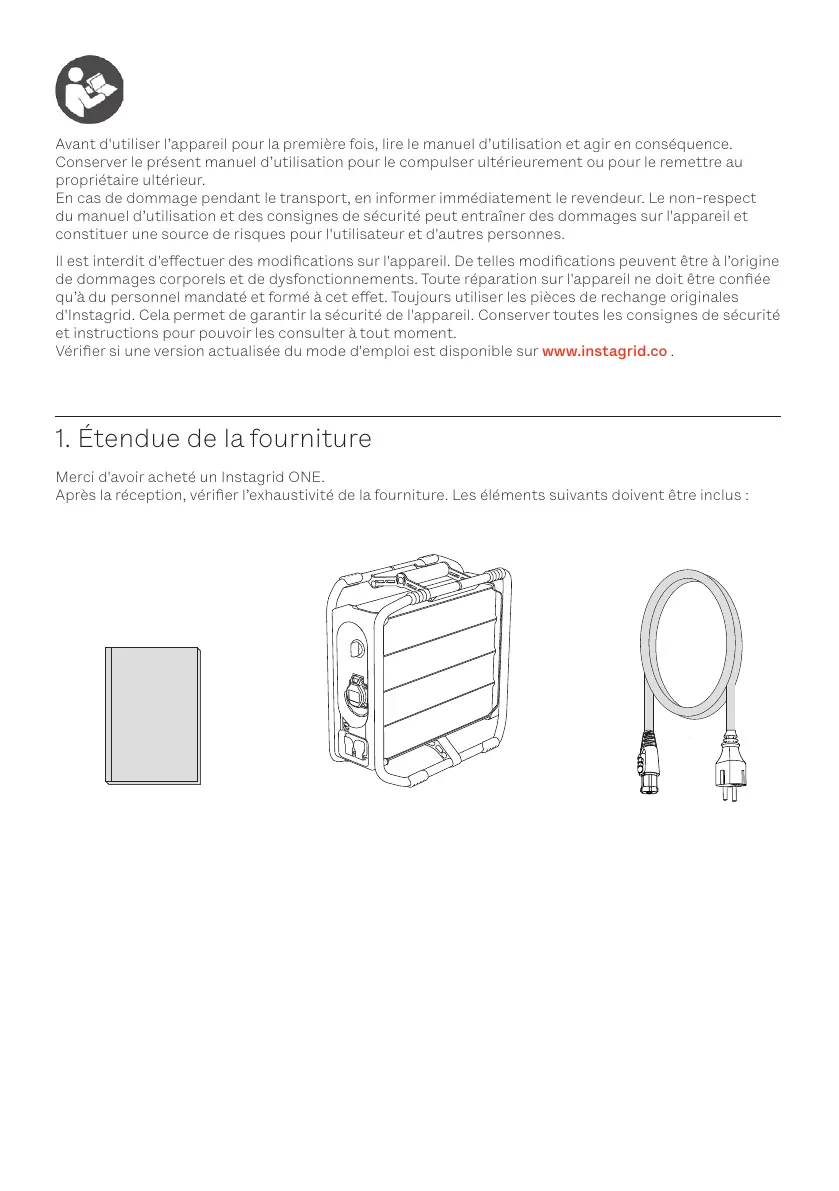 d'Instagrid. Cela permet de garantir la sécurité de l'appareil. Conserver toutes les consignes de sécurité