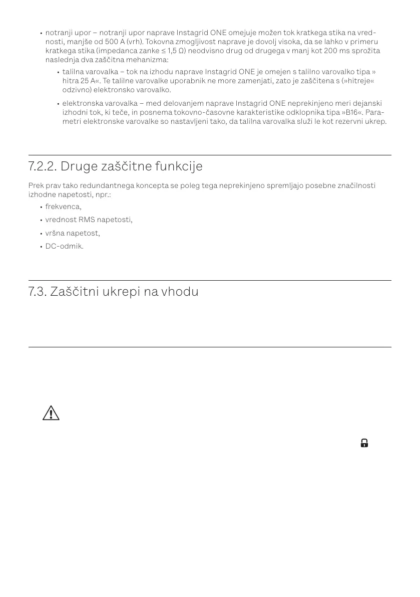 • talilna varovalka – tok na izhodu naprave Instagrid ONE je omejen s talilno varovalko tipa »