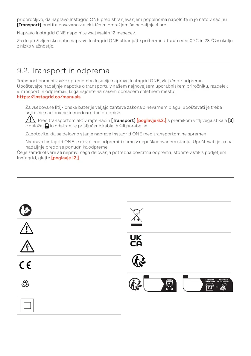 Transport pomeni vsako spremembo lokacije naprave Instagrid ONE, vključno z odpremo.