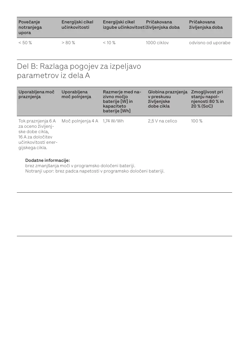< 50 % > 80 % < 10 % 1000 ciklov odvisno od uporabe