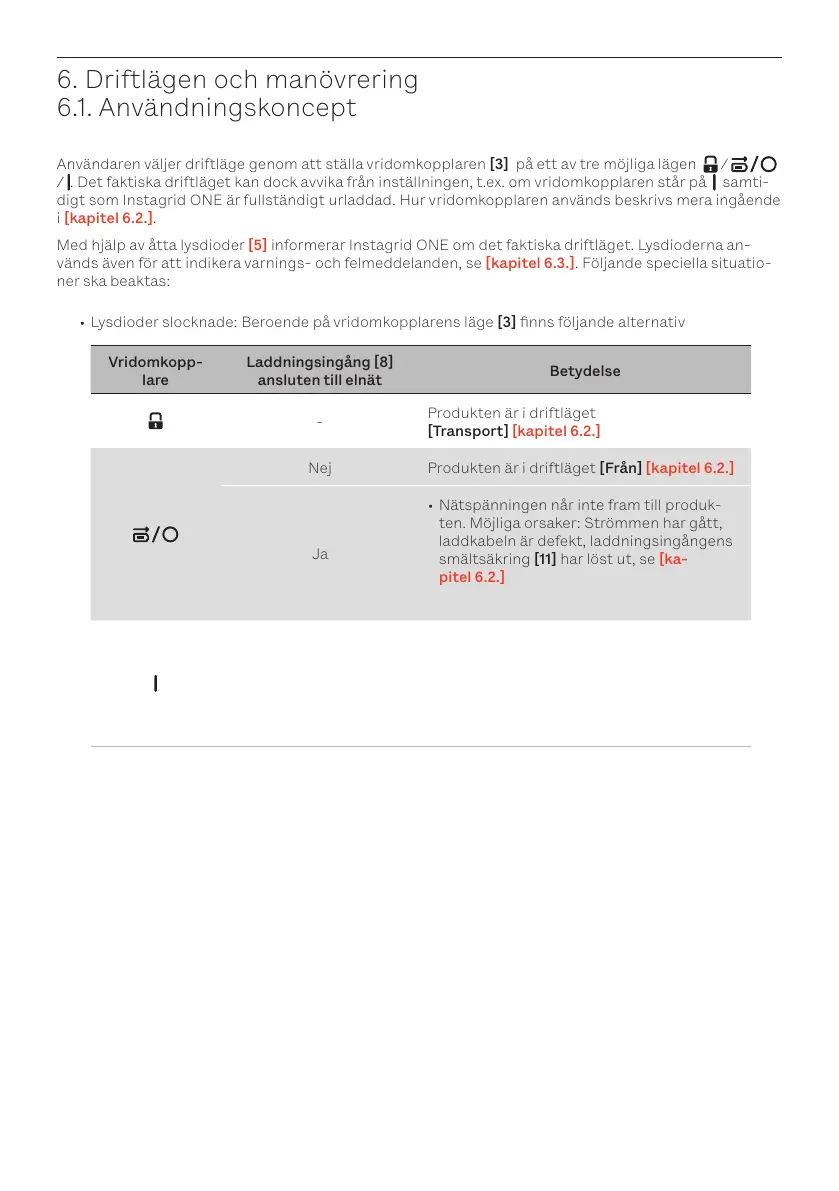 • I driftlägena [Laddning] och [Urladdning] [kapitel 6.2.] indikeras Instagrid ONEs aktuella ladd-