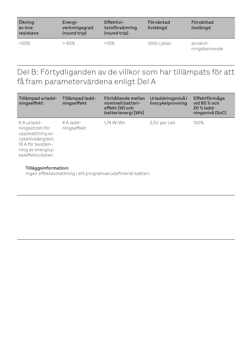 Ingen eektavmattning i ett programvarudenierat batteri.
