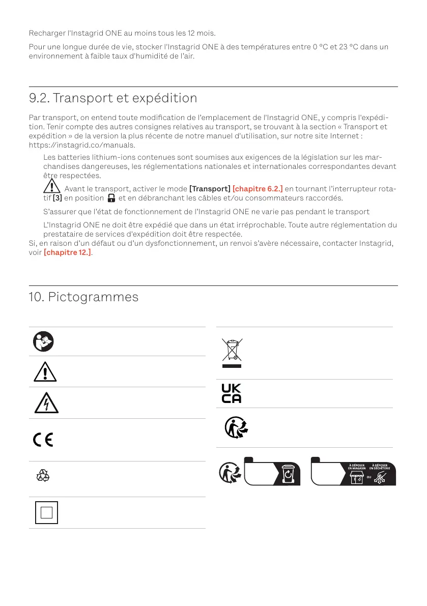 L’Instagrid ONE ne doit être expédié que dans un état irréprochable. Toute autre réglementation du