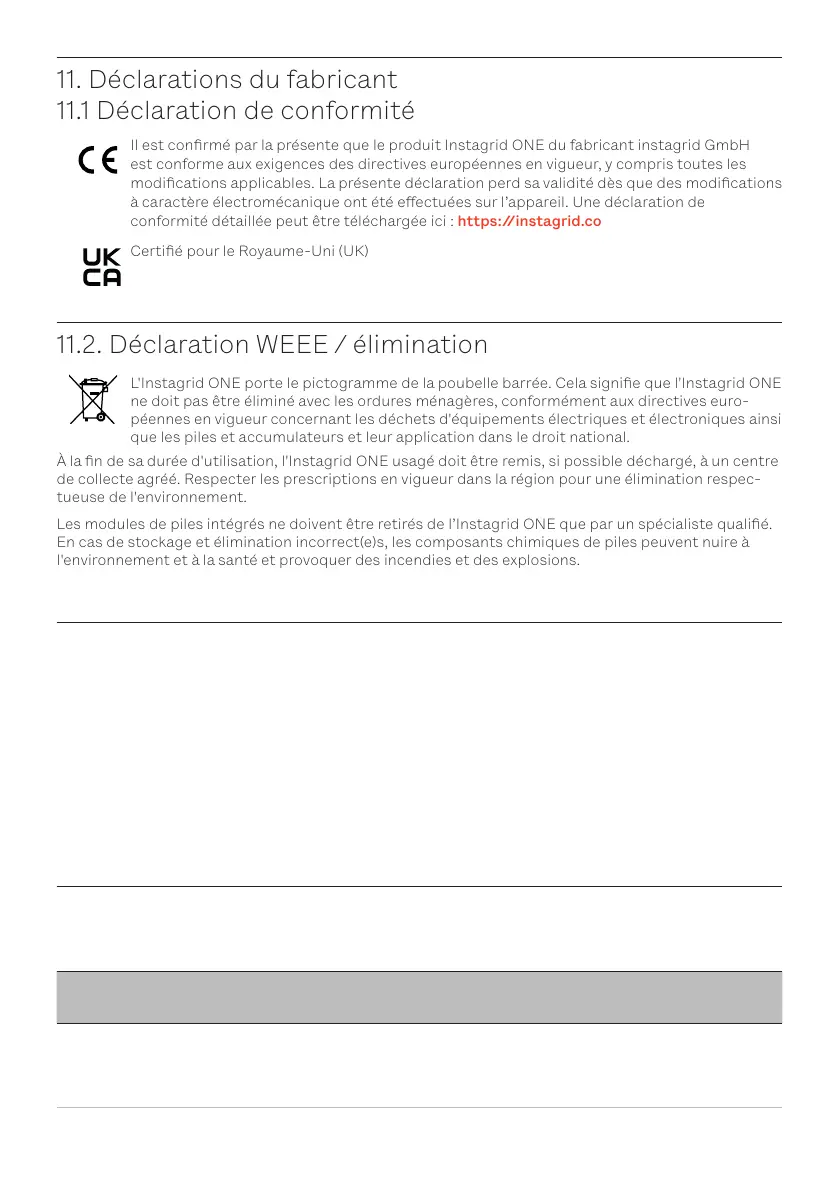 À la n de sa durée d'utilisation, l'Instagrid ONE usagé doit être remis, si possible déchargé, à un centre