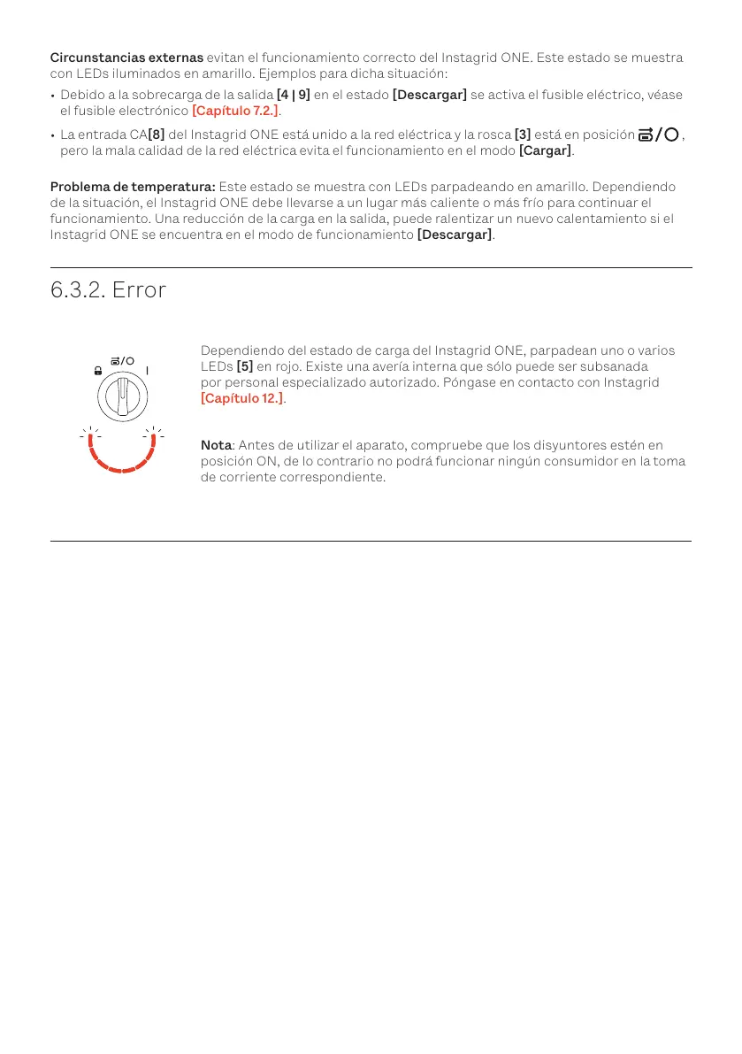Circunstancias externas evitan el funcionamiento correcto del Instagrid ONE. Este estado se muestra