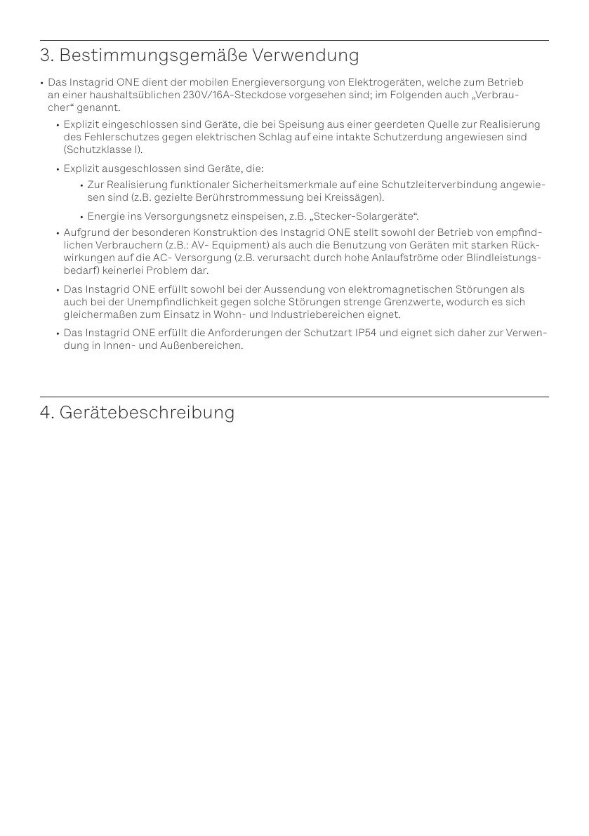 • Das Instagrid ONE erfüllt die Anforderungen der Schutzart IP54 und eignet sich daher zur Verwen-