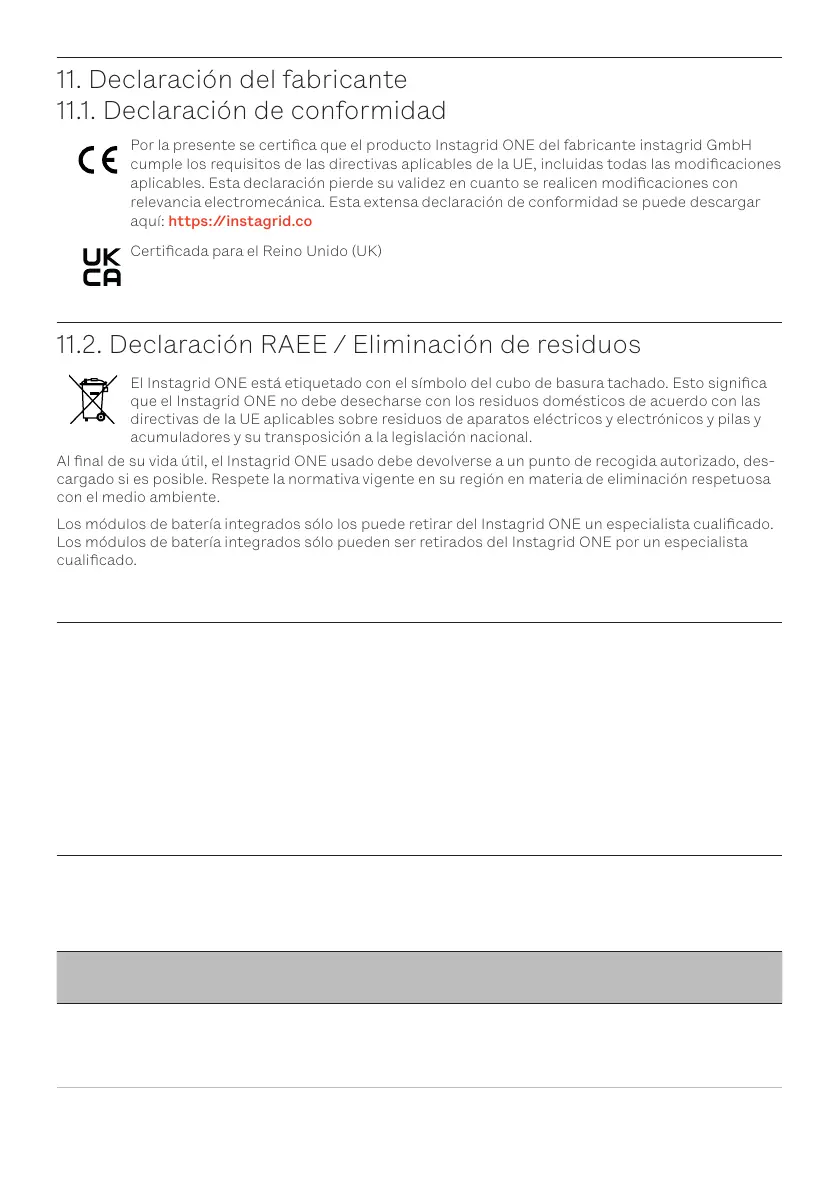 Al nal de su vida útil, el Instagrid ONE usado debe devolverse a un punto de recogida autorizado, des-