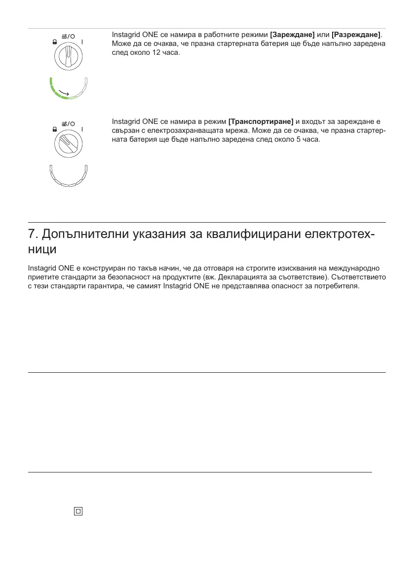 В работен режим [Зареждане] Instagrid ONE отговаря на изискванията към електрически уред от Клас