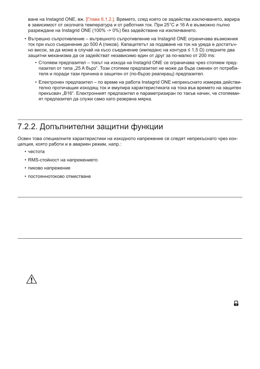 • Стопяем предпазител – токът на изхода на Instagrid ONE се ограничава чрез стопяем пред-