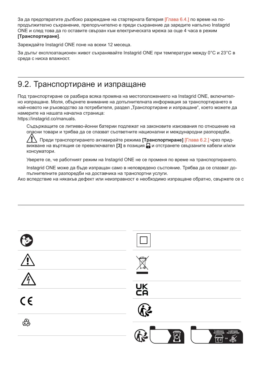 Под транспортиране се разбира всяка промяна на местоположението на Instagrid ONE, включител-