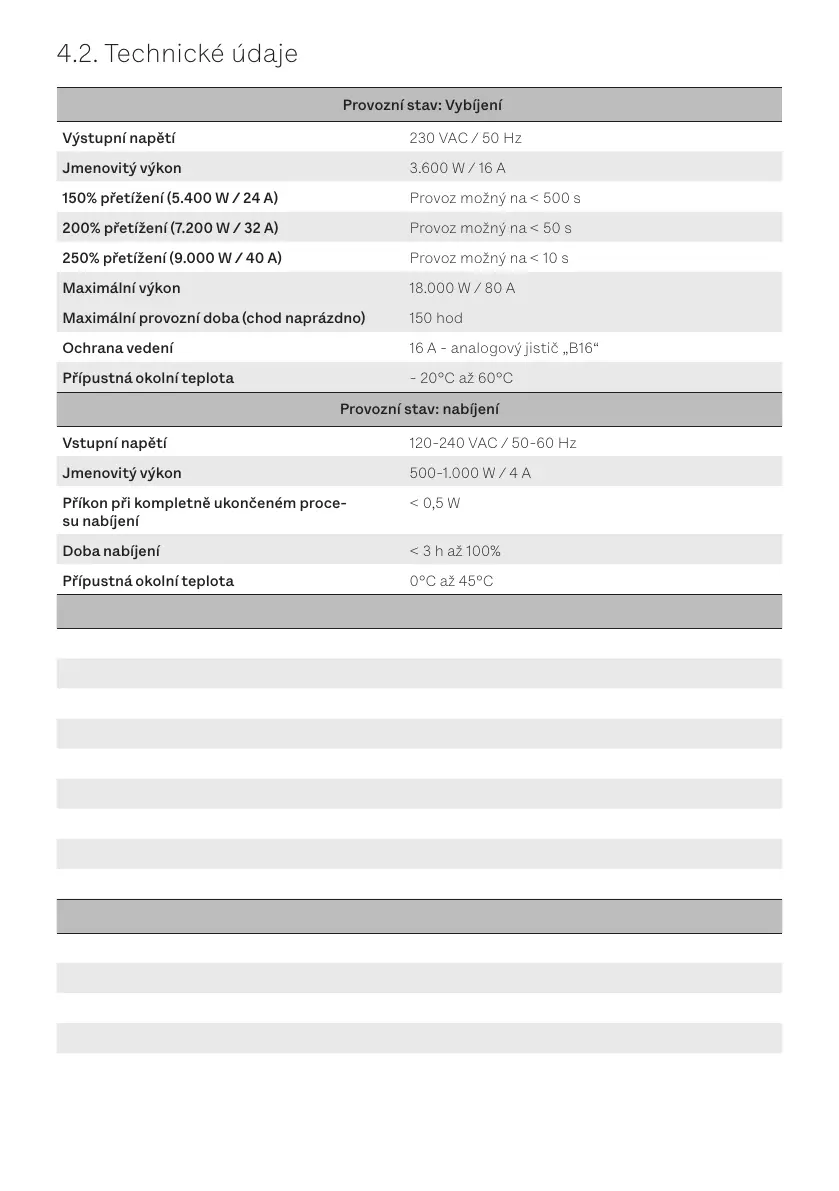 250% přetížení (9.000 W / 40 A) Provoz možný na < 10 s