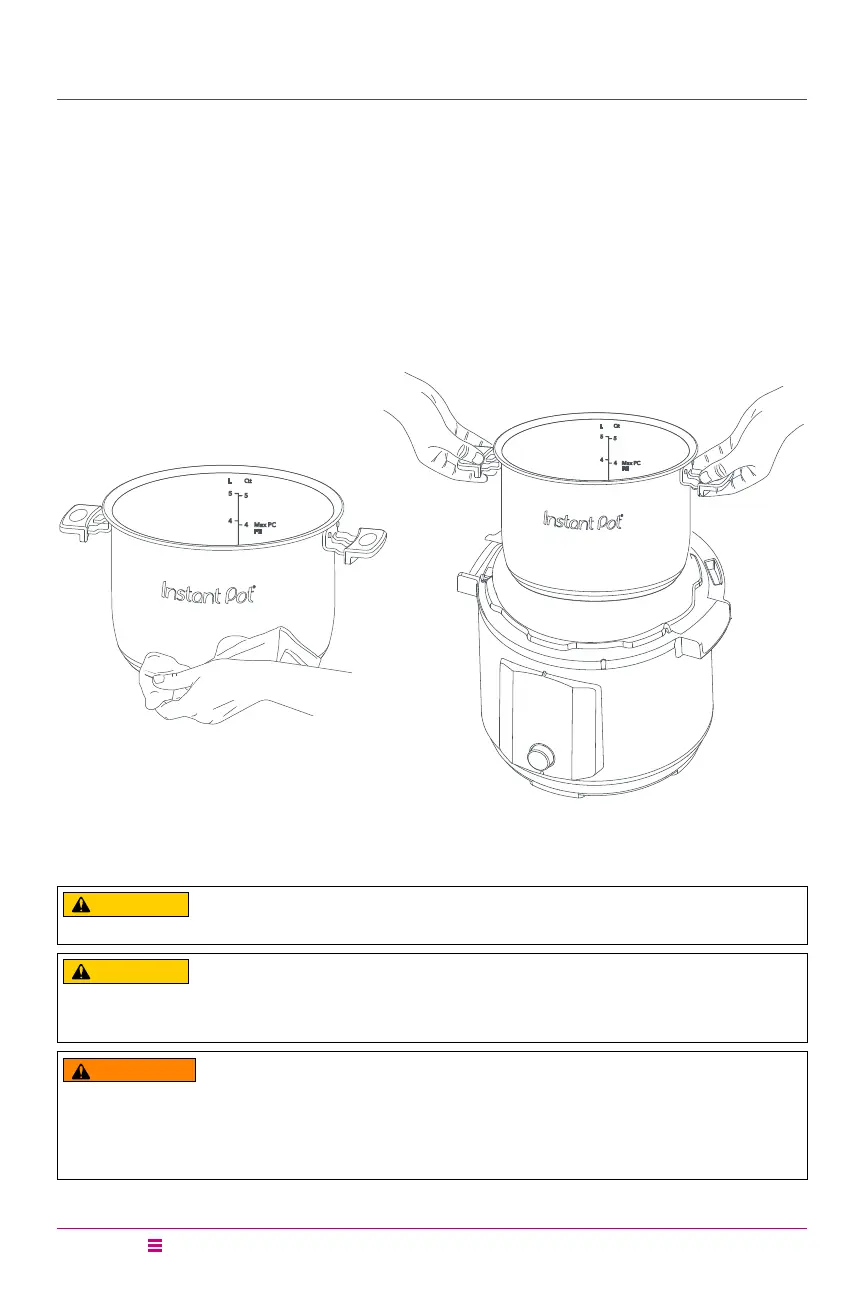 inner pot, and never directly in the cooker base. Always use an authorized Instant