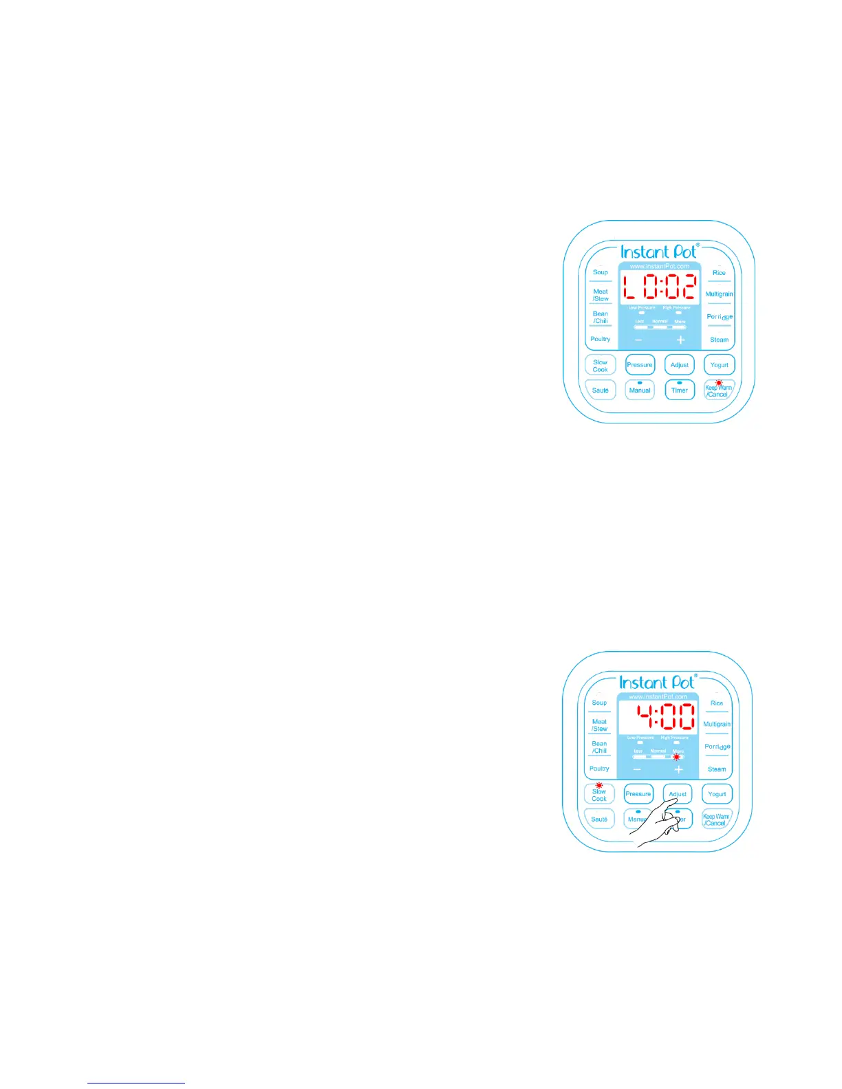 1. Follow steps in the previous “Pressure Cooking” and “Slow Cooking” secons to set a