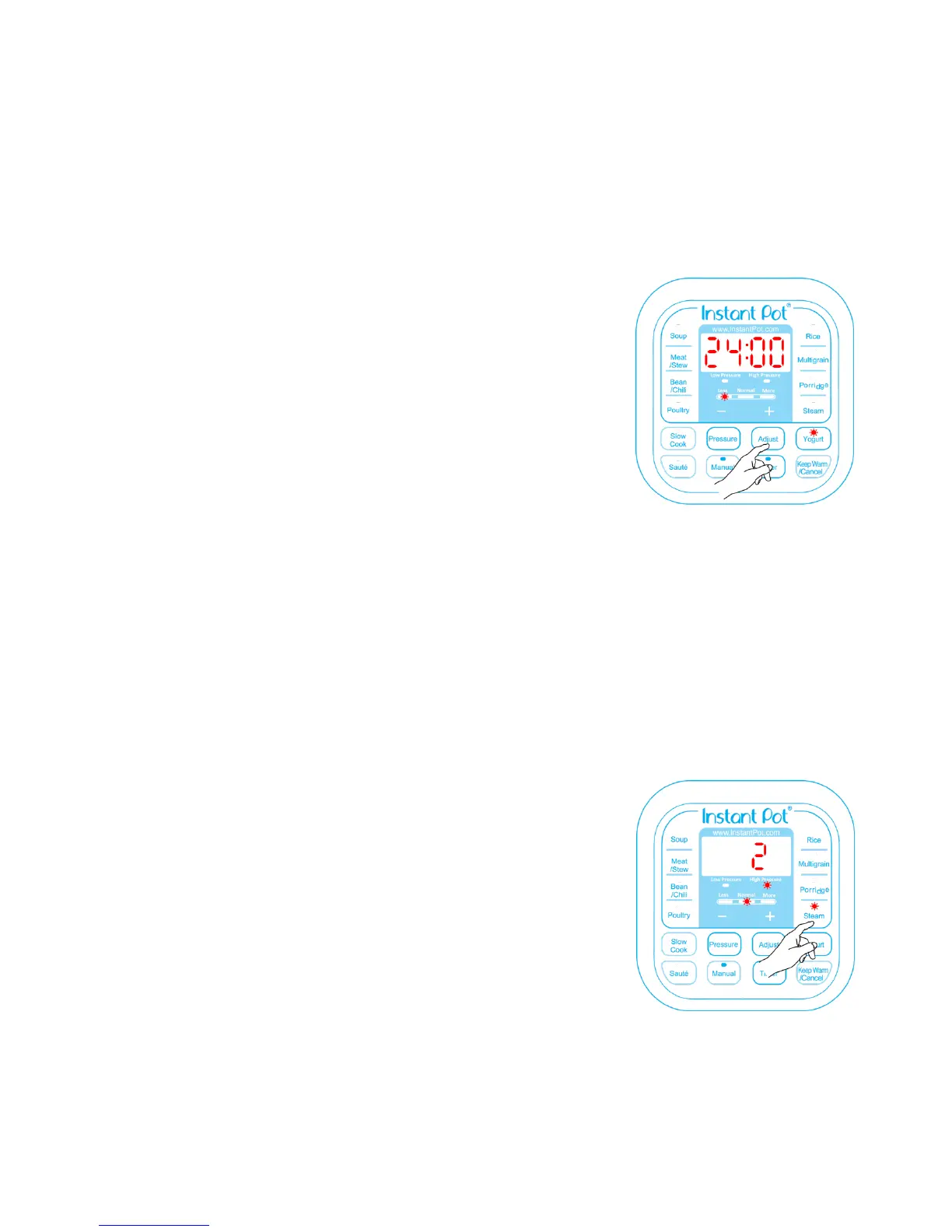 6. Press the “Yogurt” funcon key and then press the “Adjust” key twice to “Less” mode for Jiu