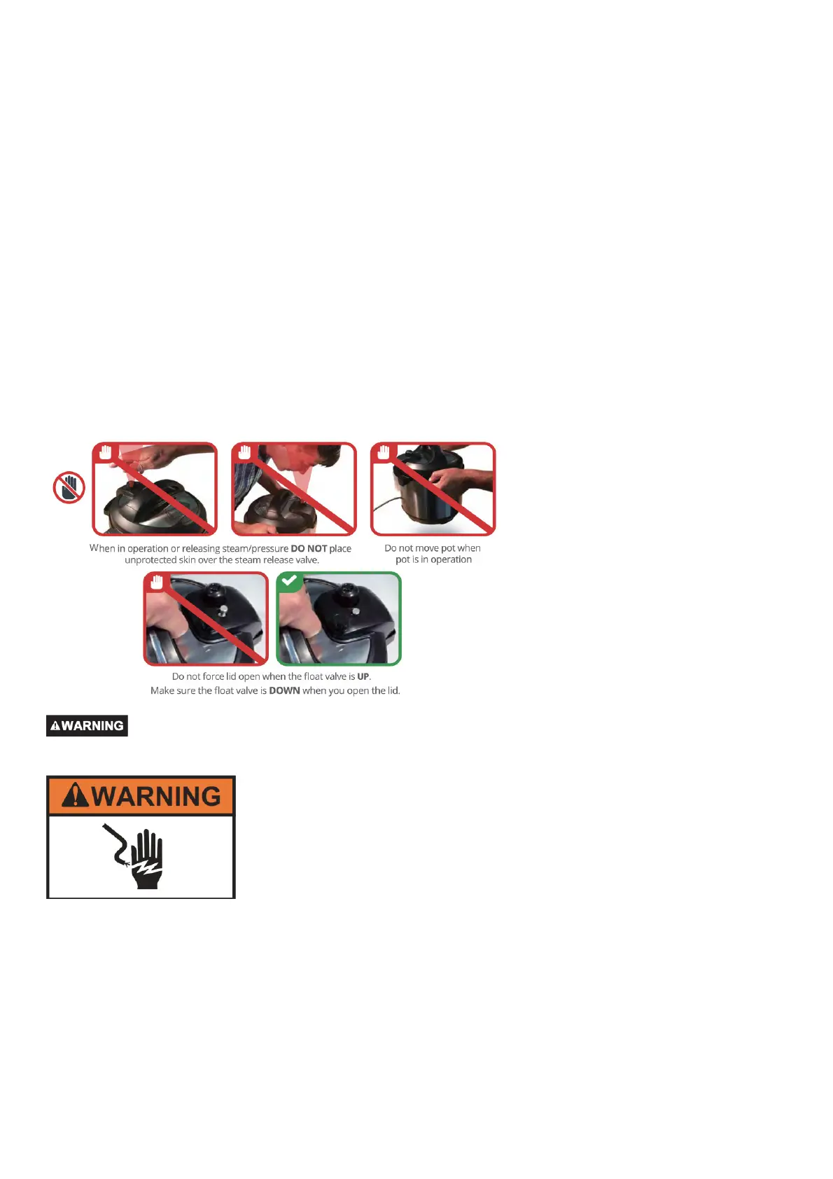 26. When pressure cooking food with a doughy or thick texture, or a high fat/oil content, contents may splatter when opening the lid. Please follow recipe