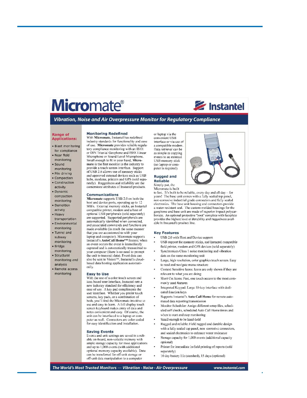 Instantel Micromate - Appendix; Micromate Specification Sheet