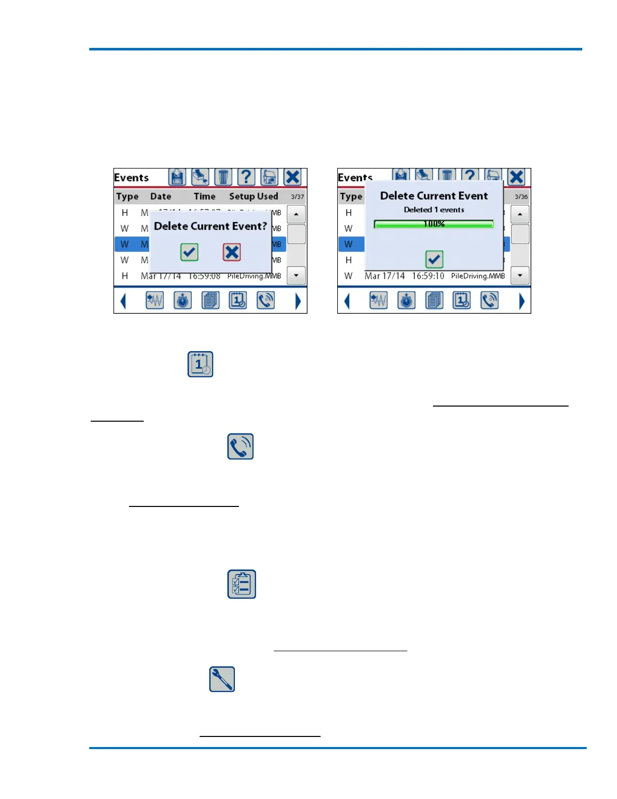 check mark on the screen will delete this event. A status window will be displayed showing the
