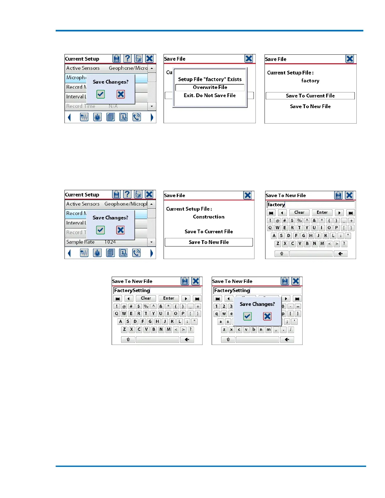 Enter New Setup Filename Save to New Filename