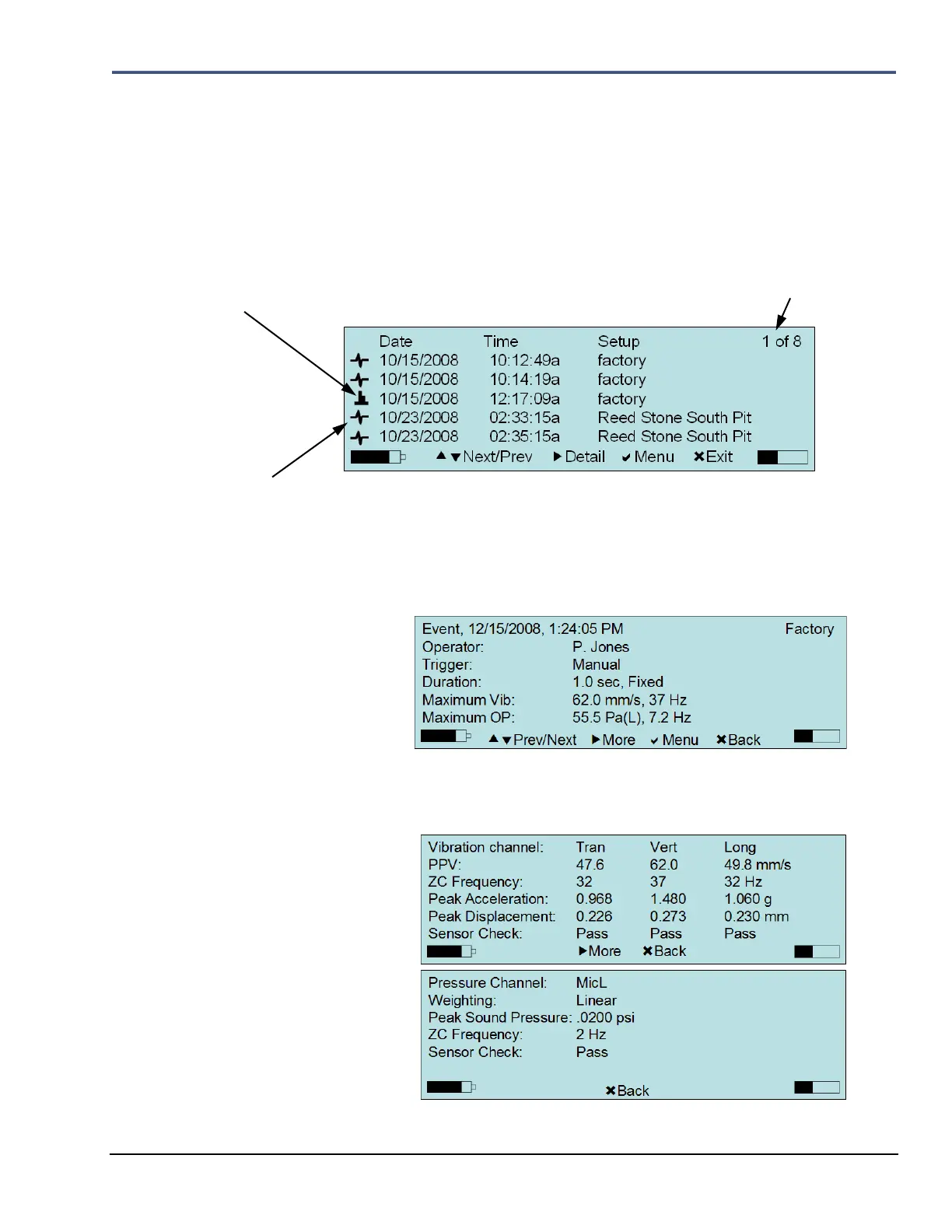 2. A list of recorded Events will appear. Press the Up or Down Arrow keys on the unit to