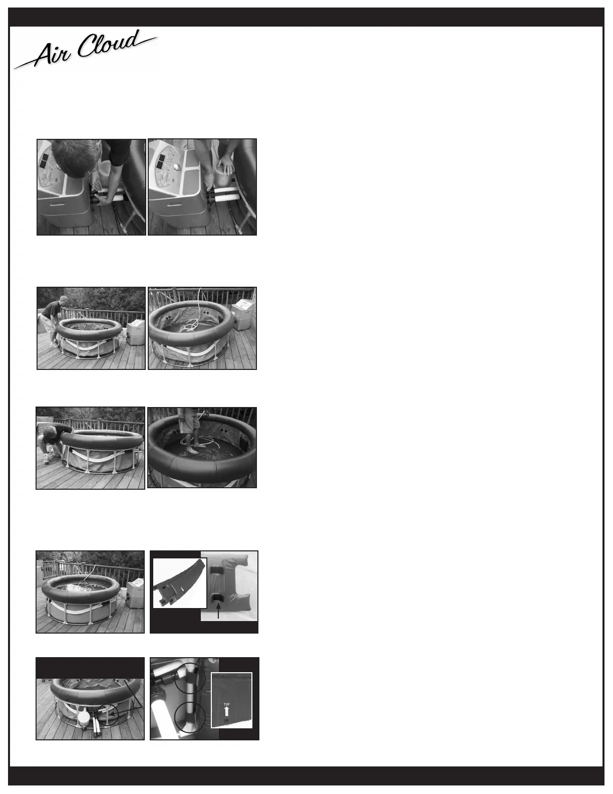 inflated top ring. Do NOT overfill. When you get into the Spa the water will rise.