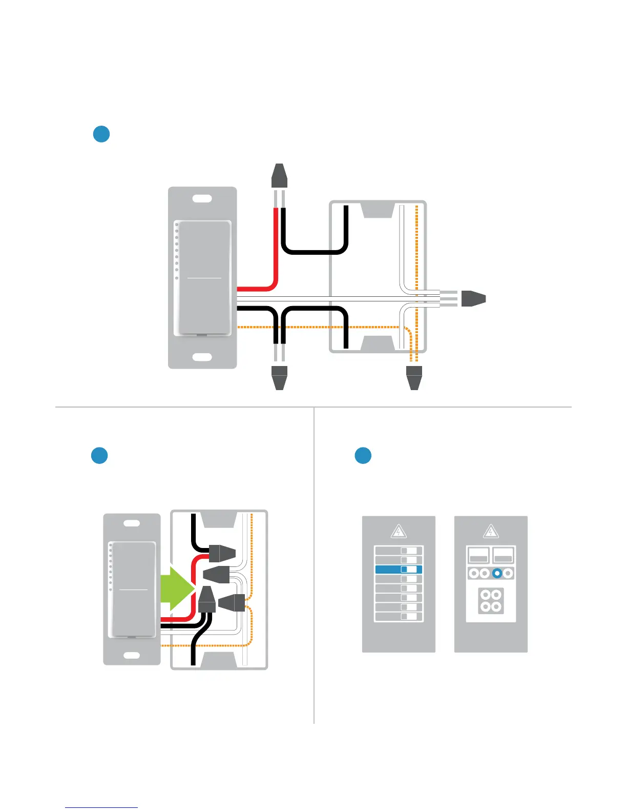 Turn o power at the circuit breaker. Connect the Wall Switch wires to the identied wires in the junction