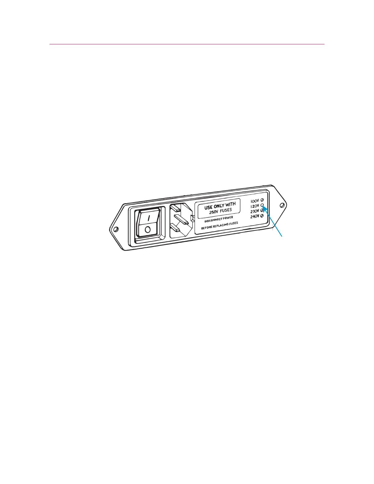 different line voltage. The current voltage is indicated by a white plastic pin visible in