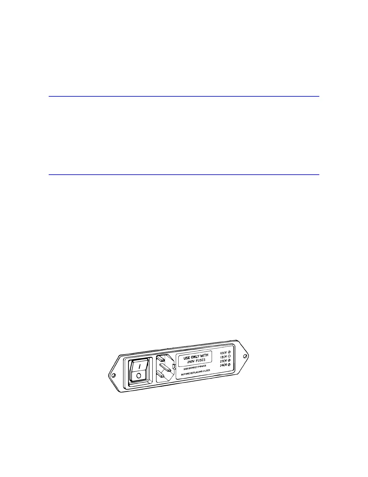 The power input connector, shown in Figure 2-1, performs the following functions:
