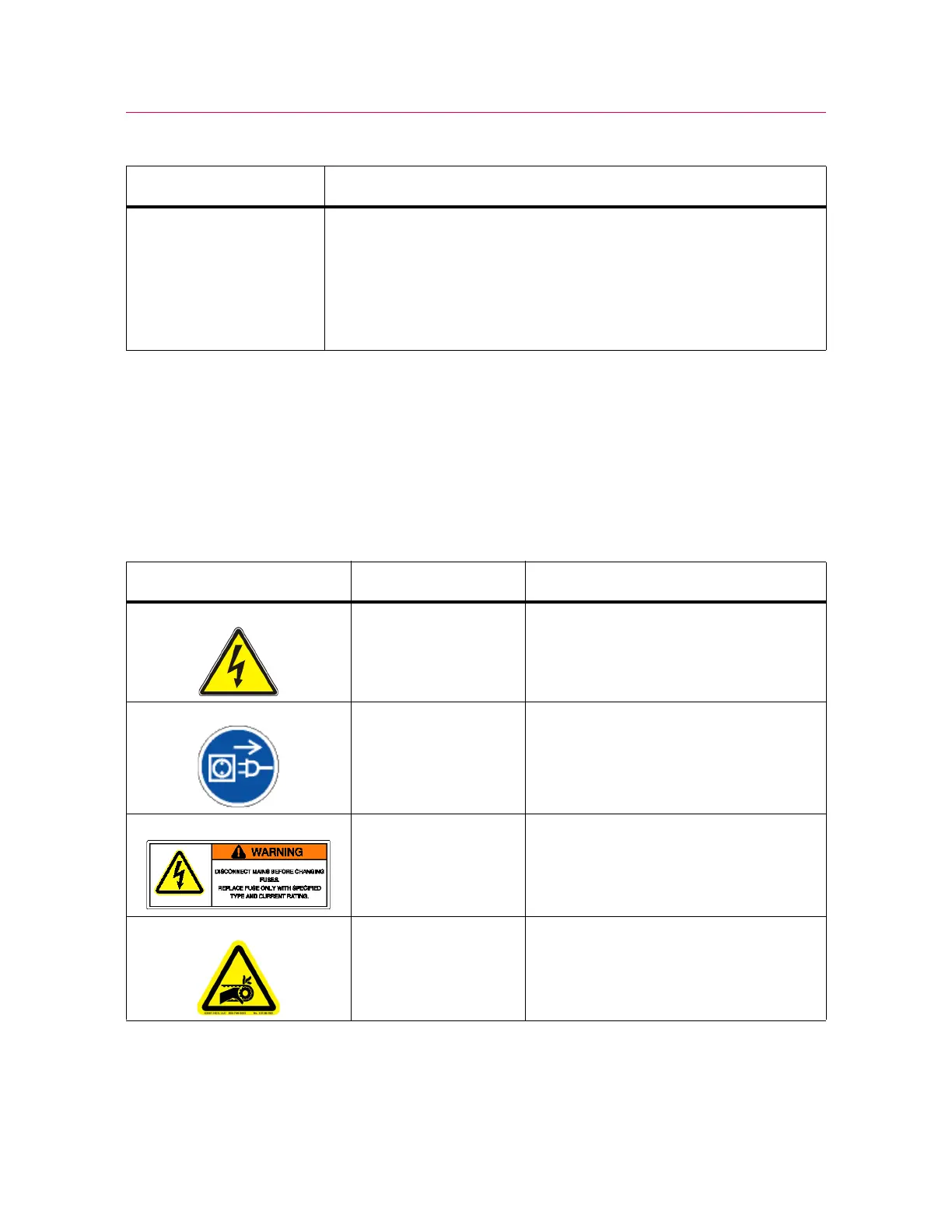 Table 5 on page 24 explains the meanings of any safety and information labels that