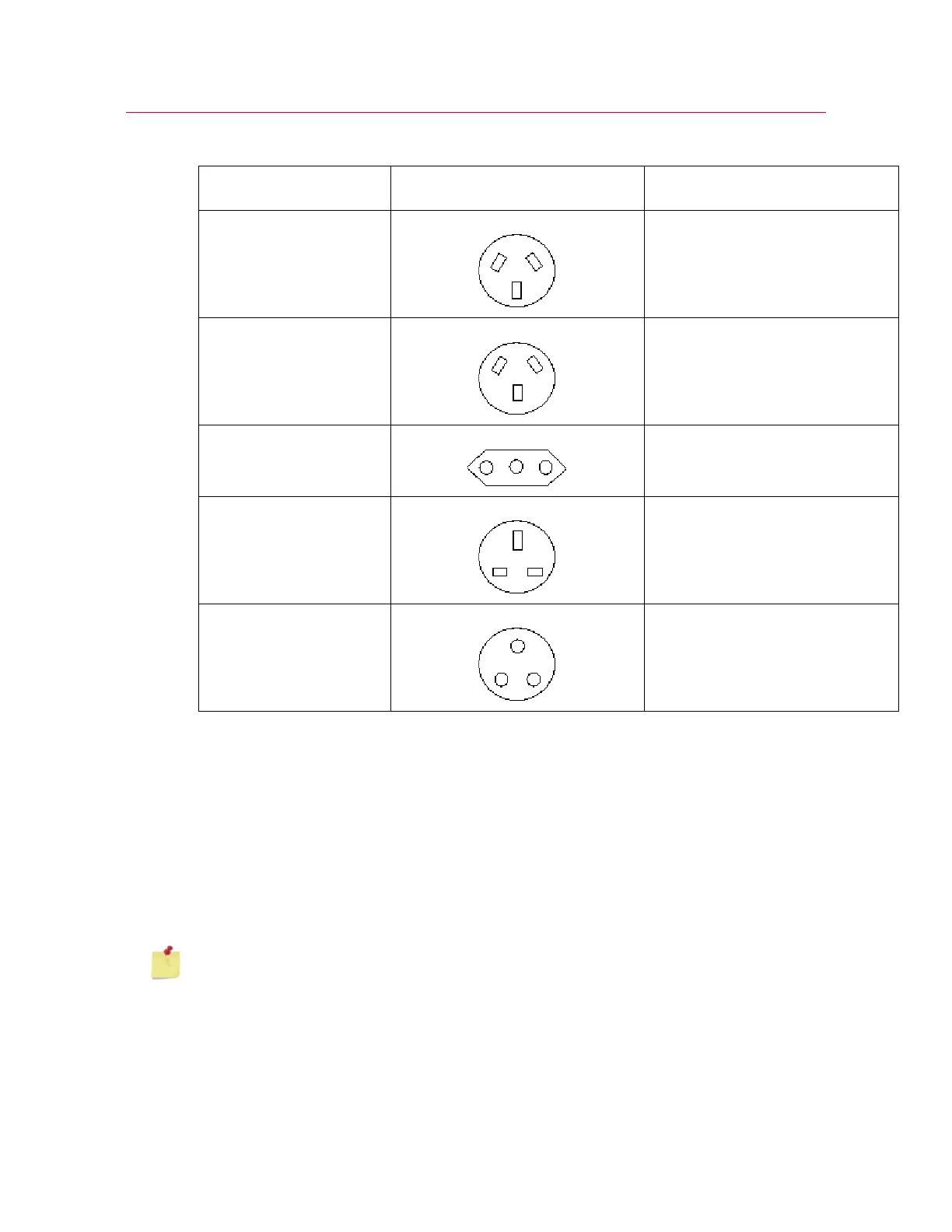 Power cord designation Matching receptacle Locale