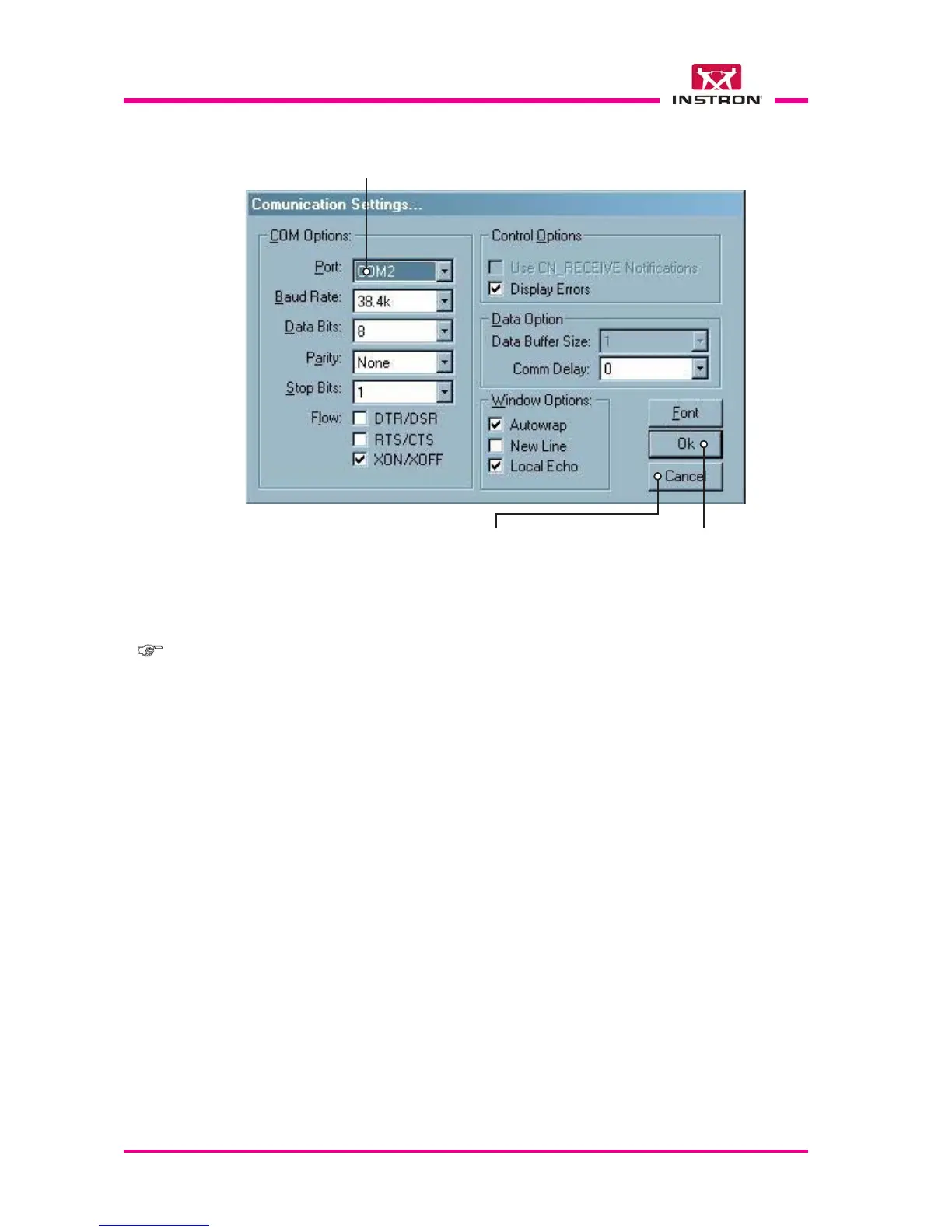 f)Select the serial port chosen for transfer. Confirm the configuration using the OK