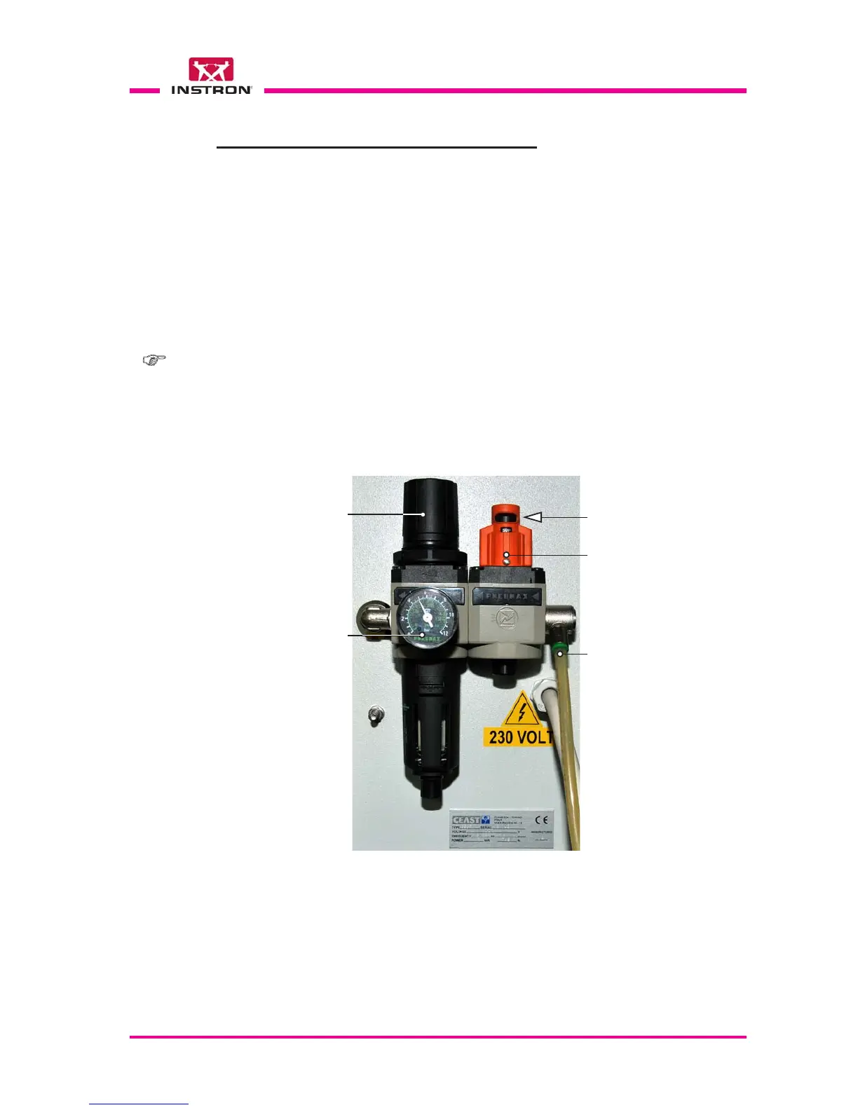 Note: the on-off valve can be used to close the compressed air inlet to the instrument