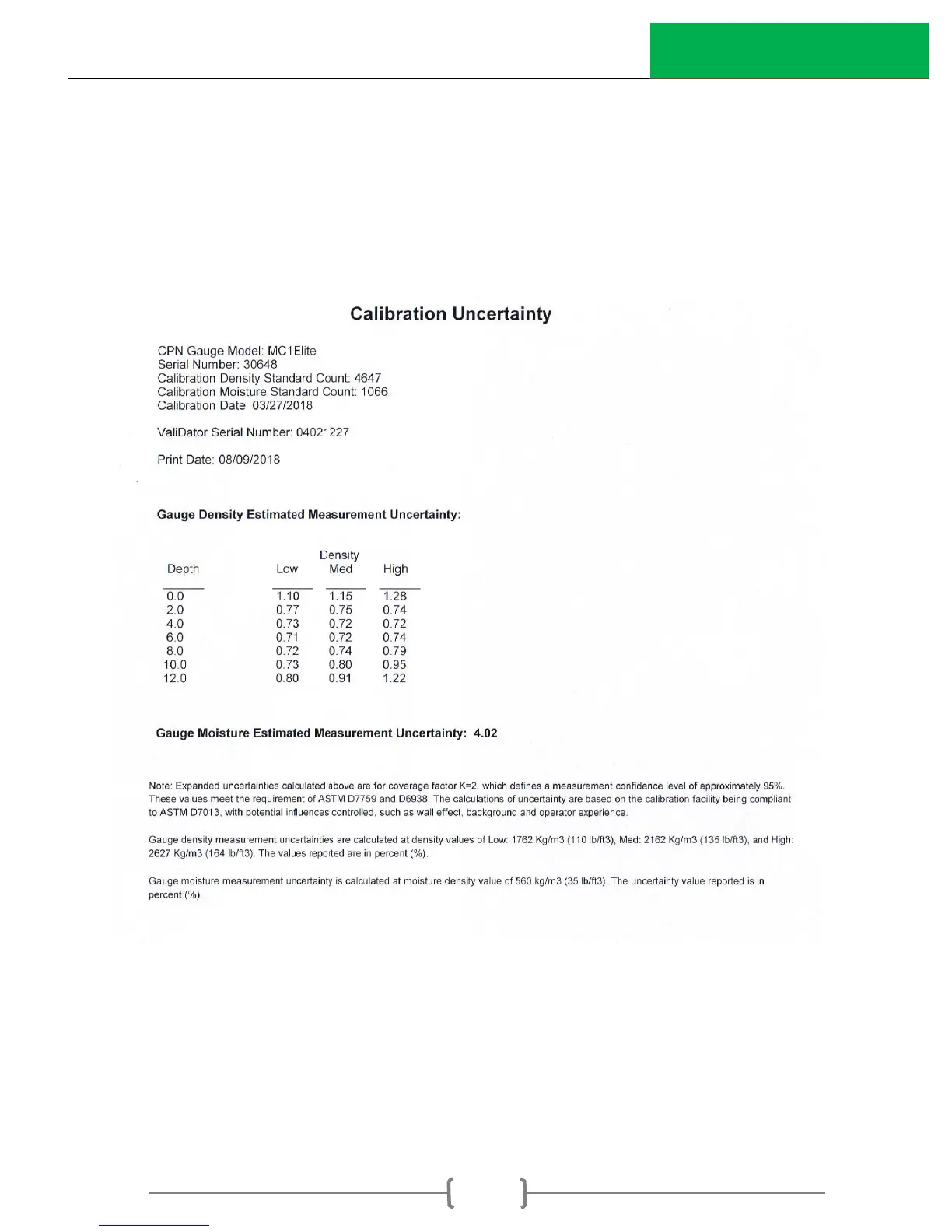 InstroTek ValiDator - Calibration and Verification Uncertainties