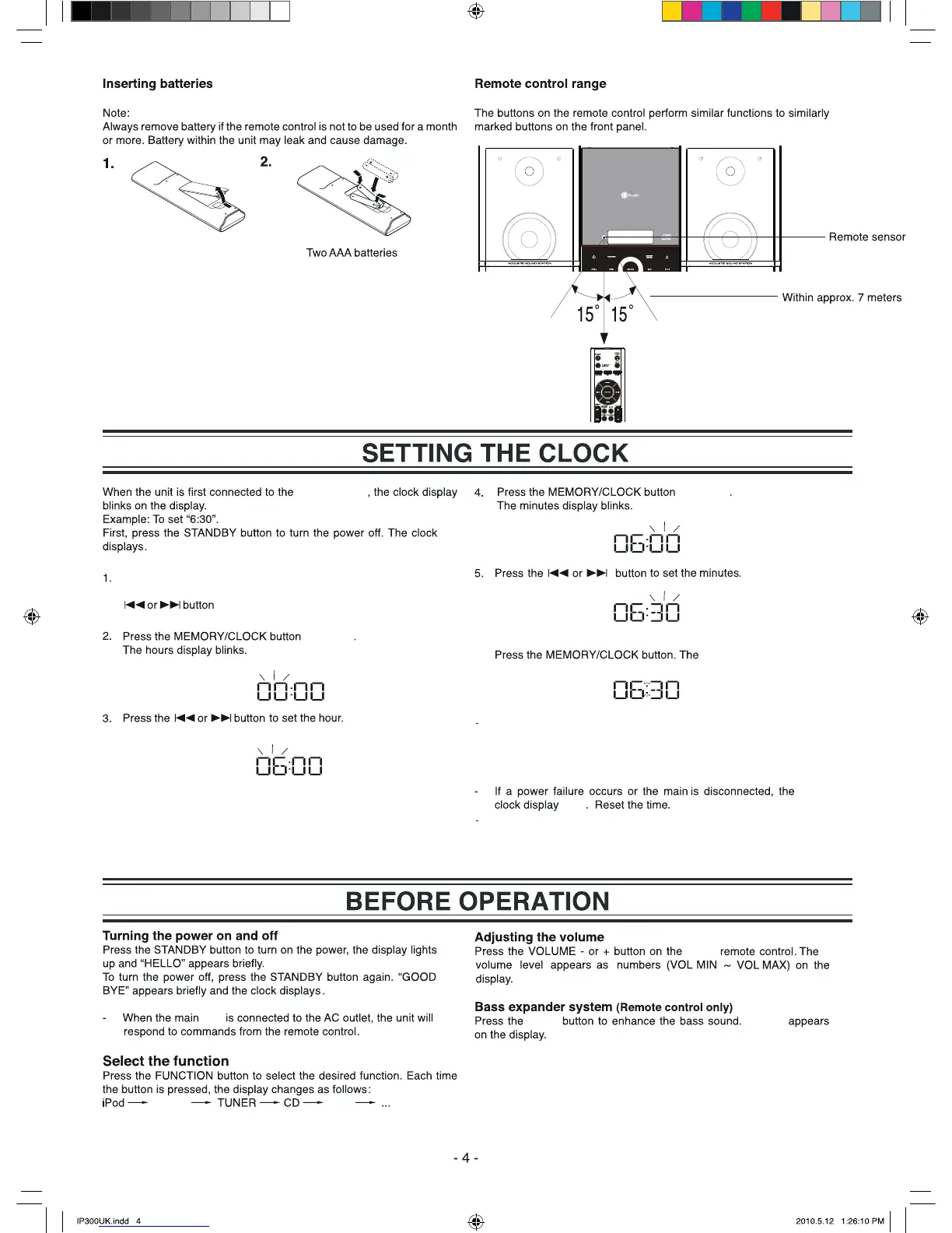 by pressing and holding the MEMORY/CLOCK button in iPod mode
