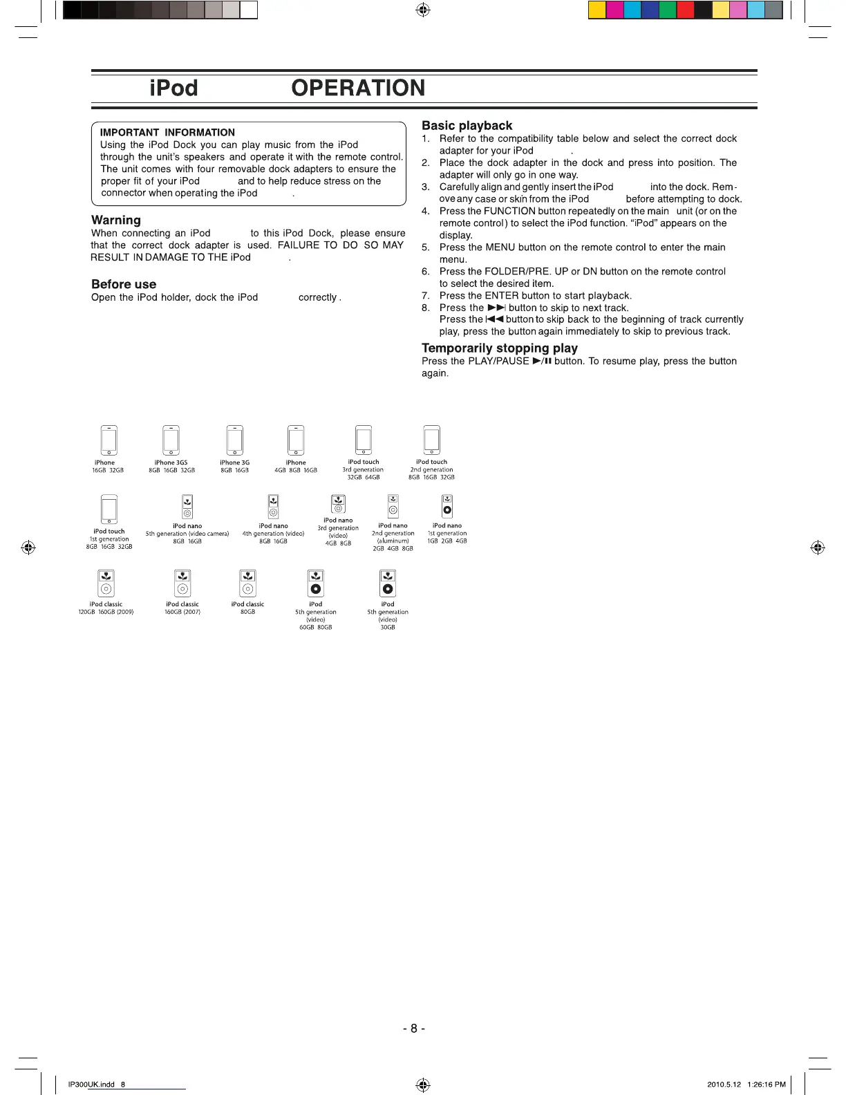 This unit operates with the below iPod/iPhone models: