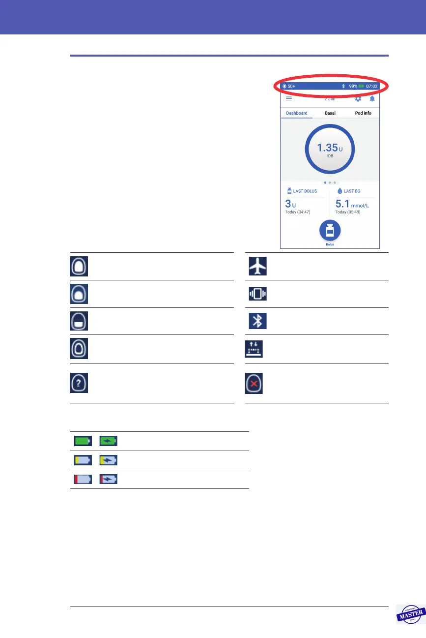 • e Pod status, including how much insulin is