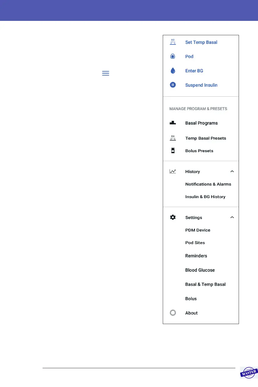 • Tap the Menu icon ( ) in the upper le