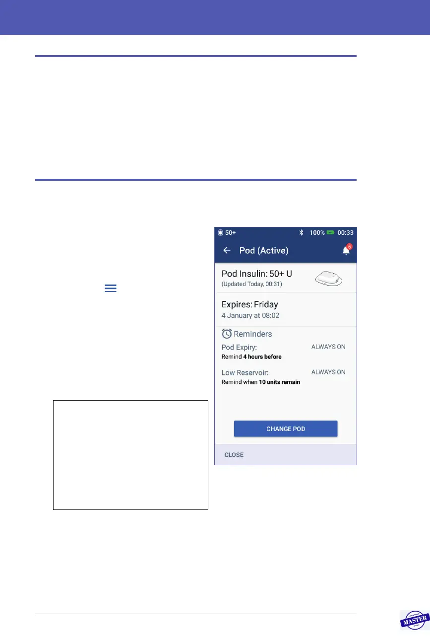 Aer completing the PDM setup ow, the Home screen displays “No Ac t i v e P o d ”.
